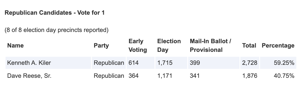 Candidates: (R) Dave Reese and (R) Kenny Kiler