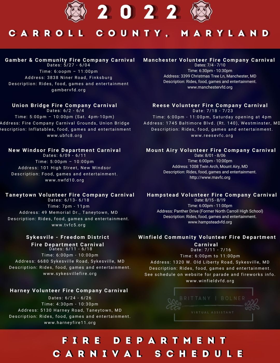 Please check our facebook and website accounts for additional information concerning the New Windsor Carnival.