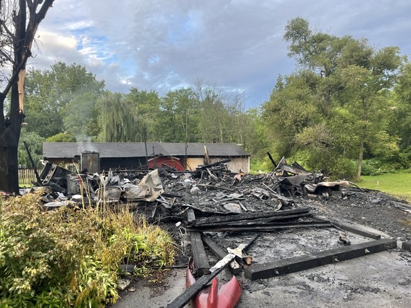 The garage was also close to two houses and a shed causing an exposure concern. Other than burned siding on the exposures, crews were able to prevent the fire from spreading to any other buildings on the property.