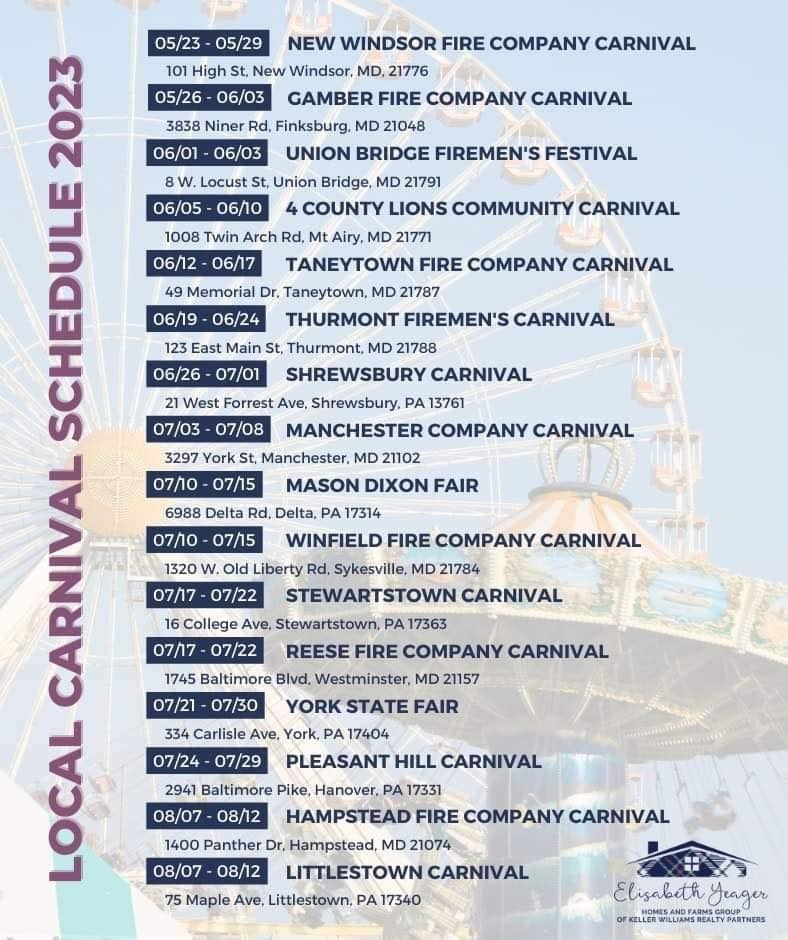 So I found additional information and thought I would update this article about the upcoming carnivals in Carroll County in 2023.