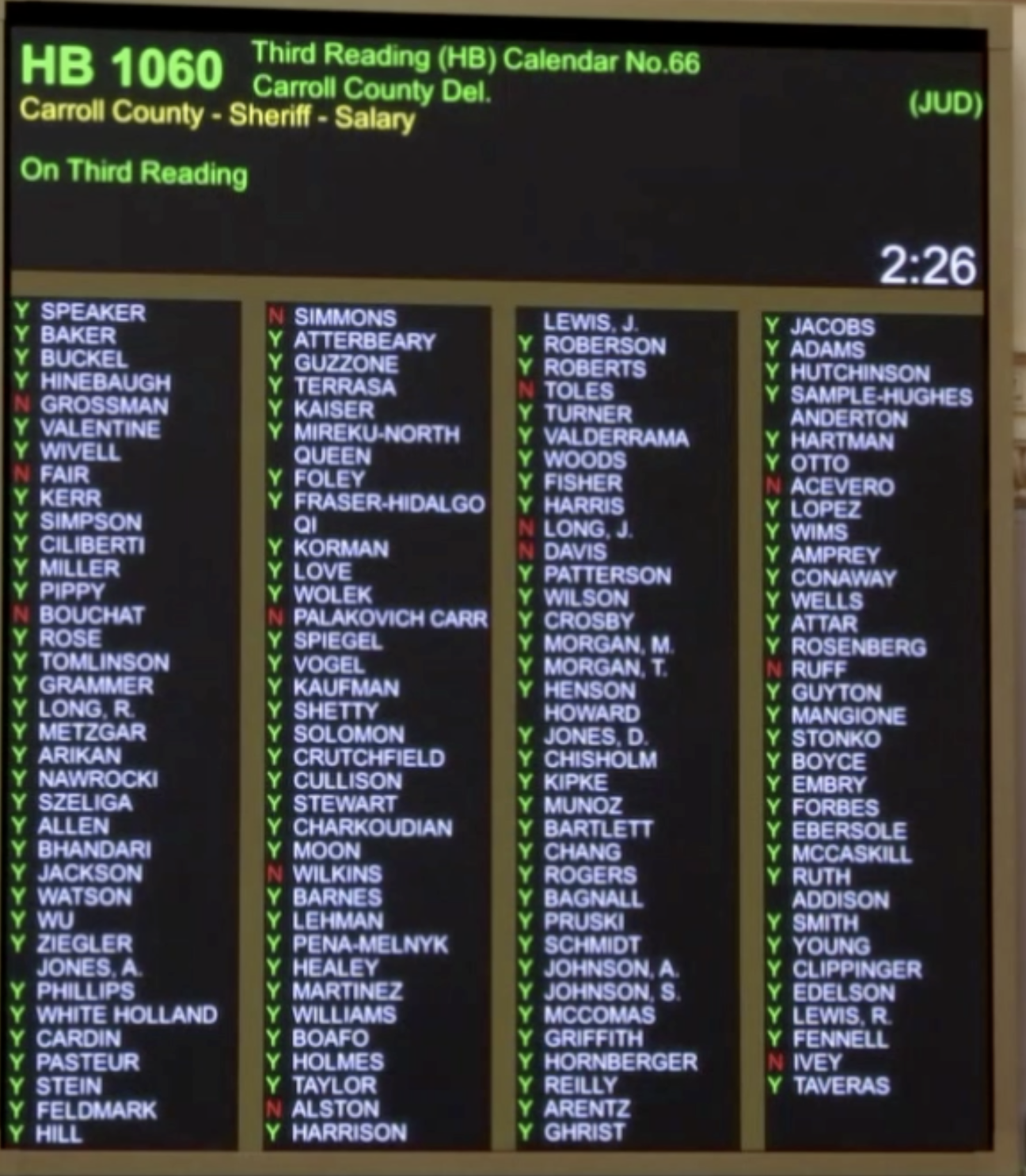 The House of Delegates had an interesting debate over legislation relating to the salary for the Sheriff in Carroll County (HB1060). The video in this article is that debate on March 16th.